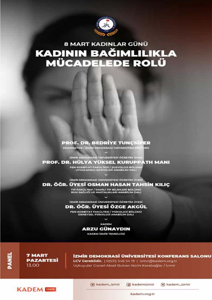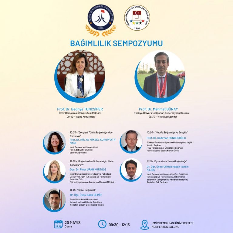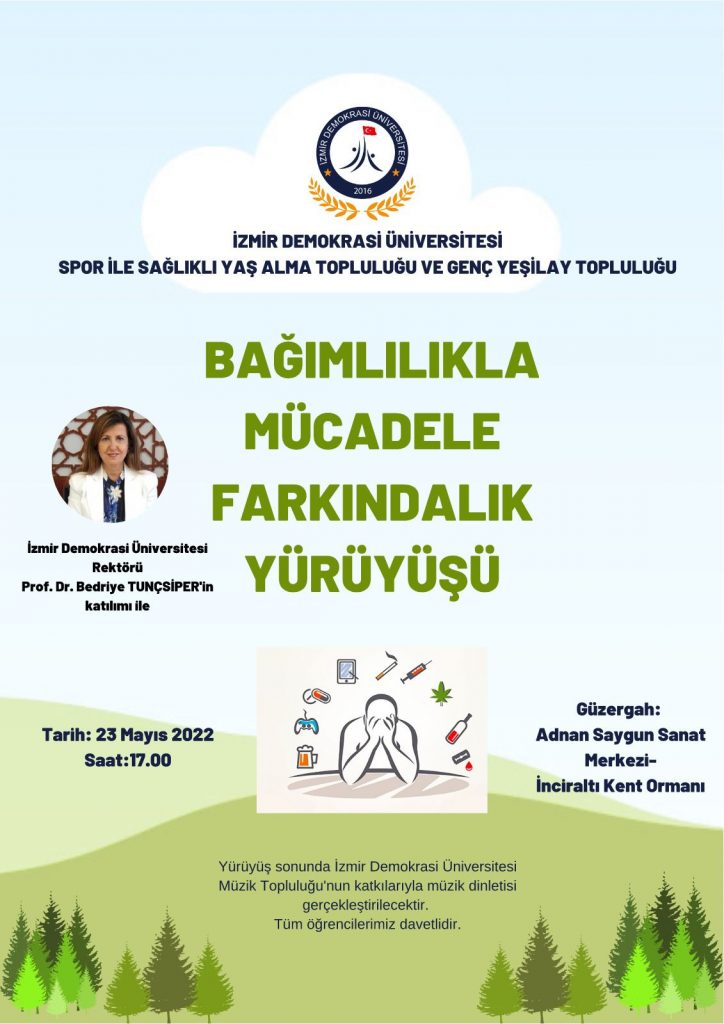 İzmir Demokrasi Üniversitesi ve Karabağlar Kaymakamlığının ortakları olduğu “ İzmir İli Karabağlar ilçesinde öğrenim gören lise öğrencilerinde alkol, sigara ve madde kullanım yaygınlığının ve ilişkili olabilecek ruhsal sosyo demografik verilerin ve madde bağımlılığını önlemede akran eğitimi programının etkisinin incelenmesi” isimli proje ile İzmir İli Karabağlar ilçesinde lise düzeyinde öğrenim gören öğrencilerde alkol, madde, sigara kullanım sıklığını saptanması ve “ Akran eğitim programı” ile gençlerin bağımlılıklardan uzak tutulması amaçlanmıştır.